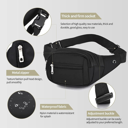 DAITET Fanny Pack for Men&Women, Crossbody Waist Bag with Adjustable Belt, Large Capacity Bum Bag for Traveling Hiking Cycling Workout Casual (Black)
